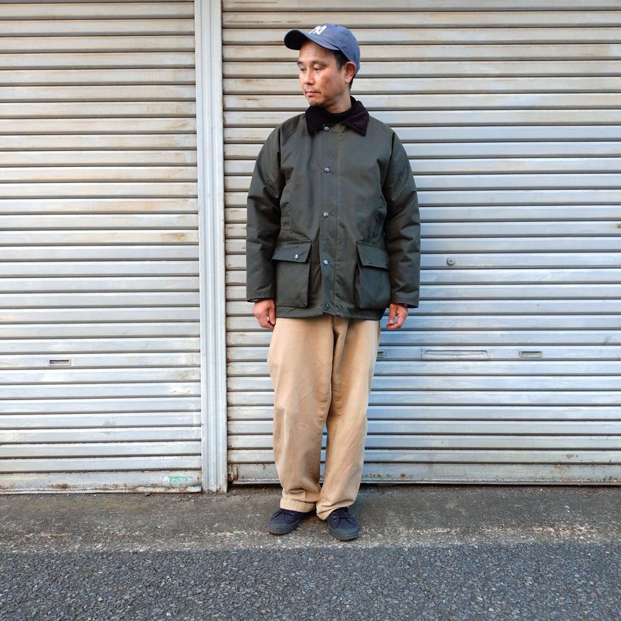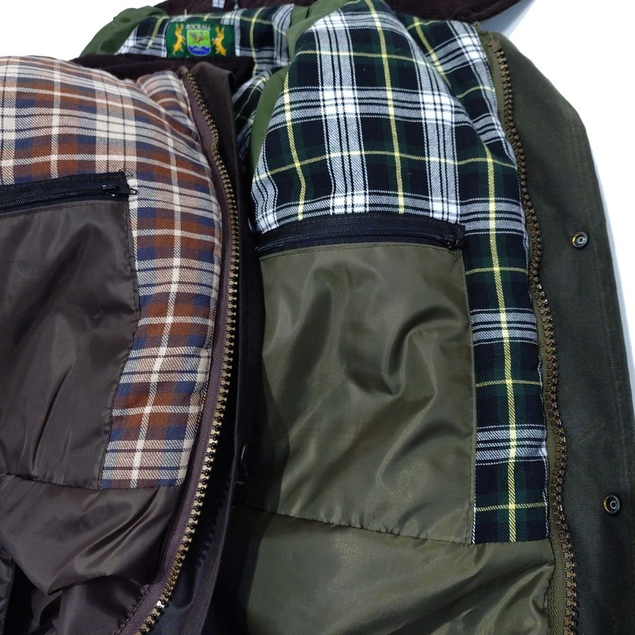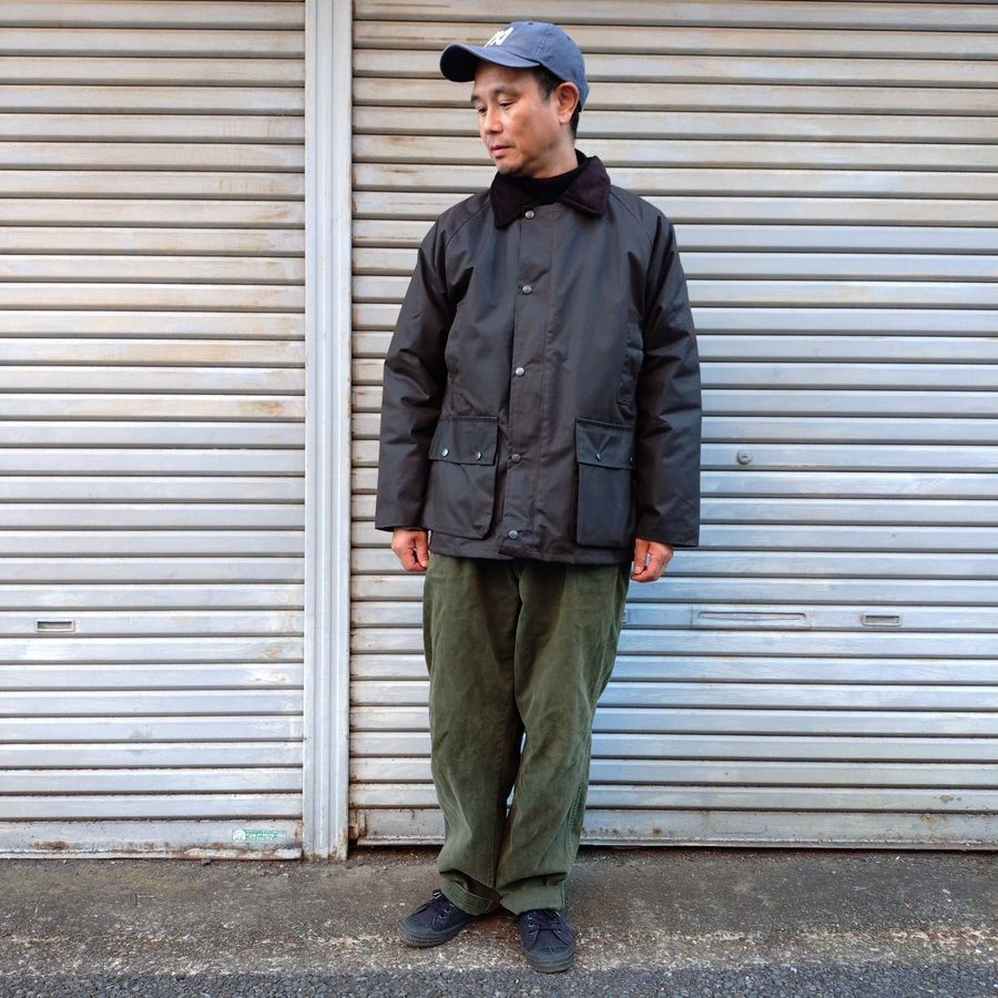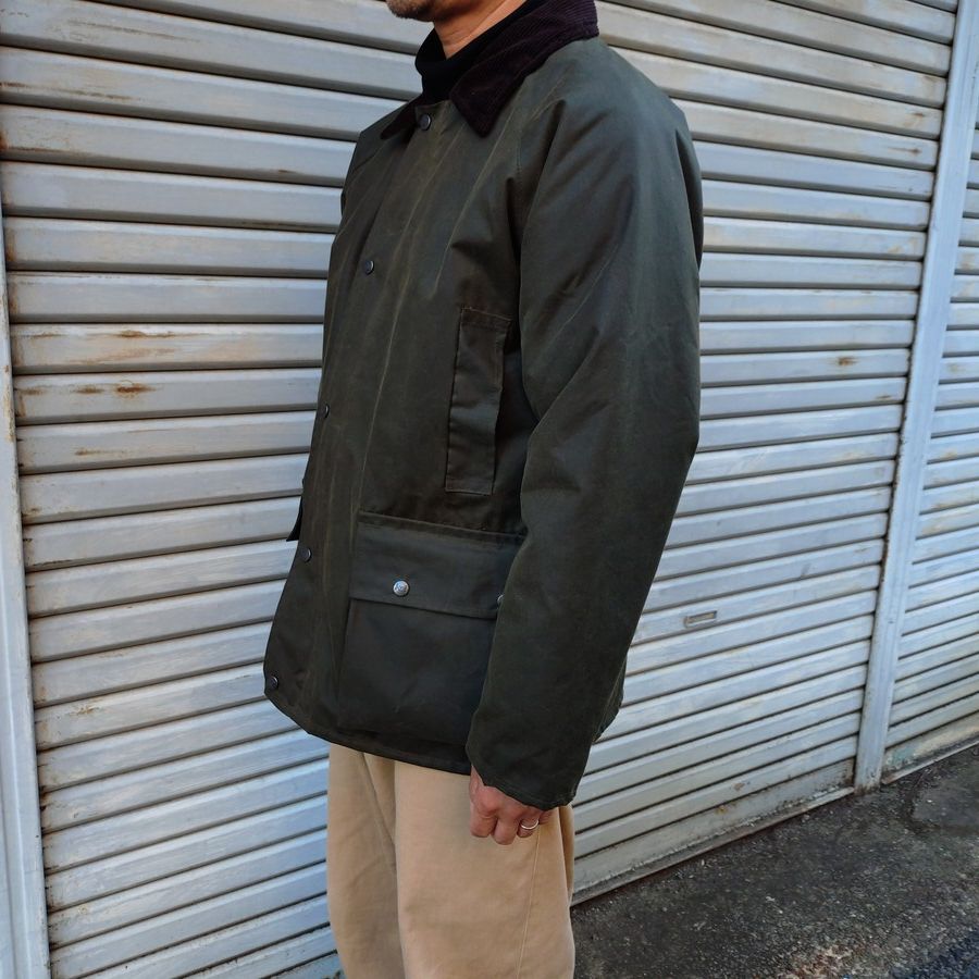 雨が多いイギリスのライフスタイルから生まれた、コットンベースの生地にワックス(オイル)を塗り防水性を高めた当時では画期的な素材となっており、現在も人気のある生地となっています。