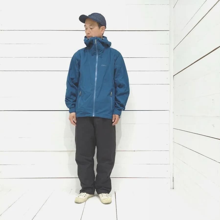 身長172cm 63kg Mサイズ着用。デニムパンツを履いたままレインライフ5000パンツを着用。