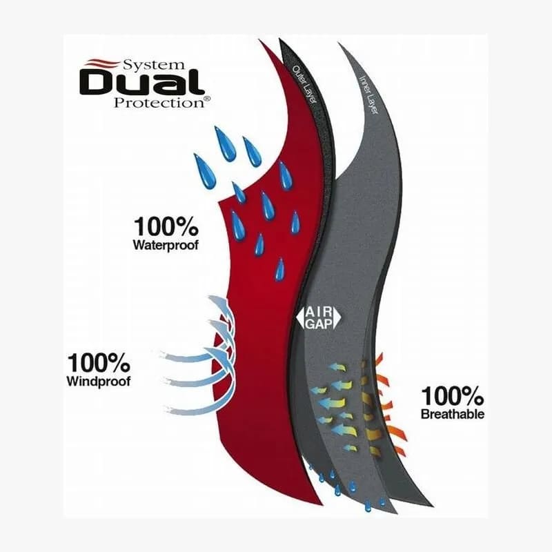 この二重膜はジャケットの耐久性も向上させます。外層が損傷した場合でも衣服は機能するためです。
